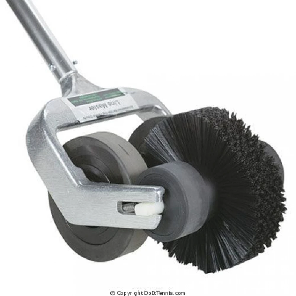The Line Master line sweeping machine improves the appearance of a freshly-swept court, in half the time it would take to sweep lines with a broom (helps minimize delays for line sweeping during tournaments).