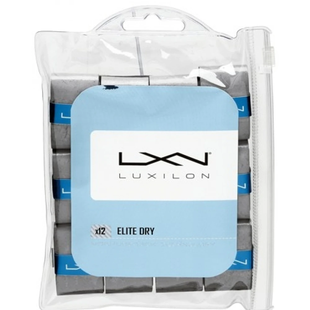 The Luxilon Elite Dry Overgrip features revolutionary soft-touch fabric and Moisture-Tack technology for a supremely comfortable feel and increased tackiness as you sweat. Ideal for humid conditions or players seeking enhanced grip. Pack includes twelve overgrips.
